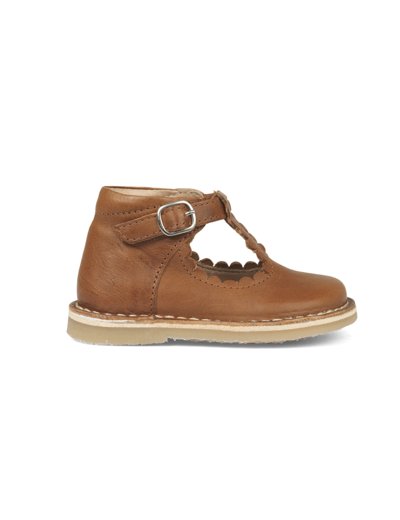 Petit Nord Copenhagen Cognac T-Bar Scallop Shoes
